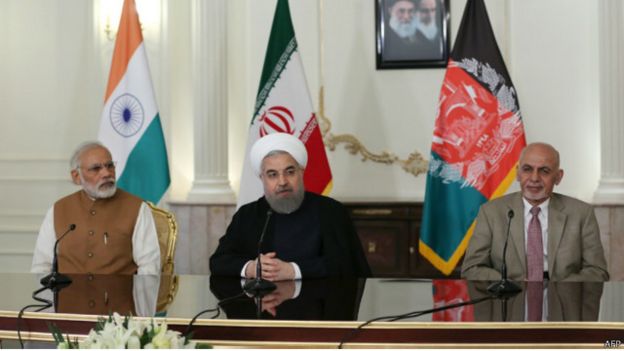 بی بی سی: در جریان سفر رئیس جمهوری افغانستان و نخست وزیر هند به ایران، سه کشور موافقتنامه اقتصادی سه جانبه توسعه بندر چابهار در جنوب شرقی ایران را امضا کردند.